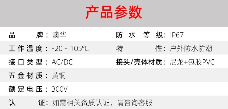 AHUA澳華公司專業(yè)生產(chǎn)LED防水插頭連接器、路燈模組分線盒、工控防水公母接頭、光伏航空插頭、新能源防水電源連接線、植物生長(zhǎng)燈連接線、畜牧養(yǎng)殖連接線、汽車線束。工廠自有模具制造、電線電纜押出、大型注塑、五金制造,雙生產(chǎn)基地,可來(lái)圖來(lái)樣個(gè)性化定制,國(guó)家高新技術(shù)規(guī)模企業(yè)!