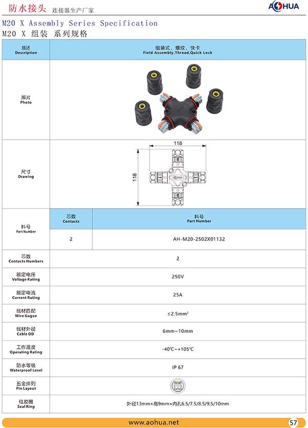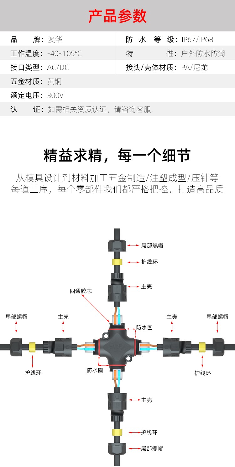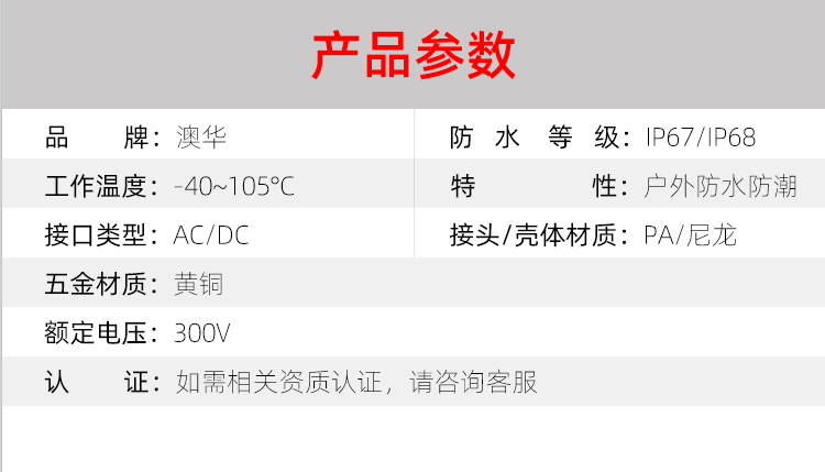 AHUA澳華公司專業(yè)生產(chǎn)LED防水插頭連接器、路燈模組分線盒、工控防水公母接頭、光伏航空插頭、新能源防水電源連接線、植物生長燈連接線、畜牧養(yǎng)殖連接線、汽車線束。工廠自有模具制造、電線電纜押出、大型注塑、五金制造,雙生產(chǎn)基地,可來圖來樣個性化定制,國家高新技術(shù)規(guī)模企業(yè)!