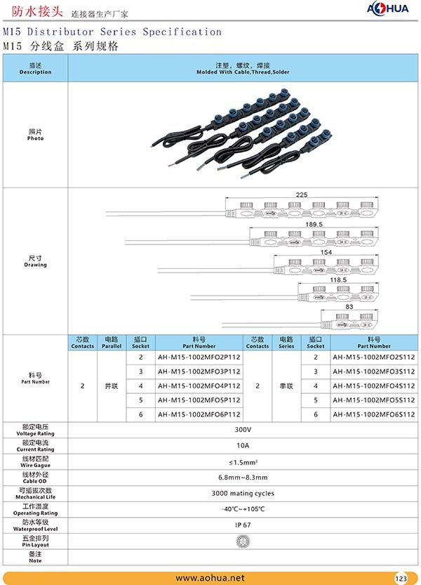 AHUA澳華公司專業(yè)生產LED防水插頭連接器、路燈模組分線盒、工控防水公母接頭、光伏航空插頭、新能源防水電源連接線、植物生長燈連接線、畜牧養(yǎng)殖連接線、汽車線束。工廠自有模具制造、電線電纜押出、大型注塑、五金制造,雙生產基地,可來圖來樣個性化定制,國家高新技術規(guī)模企業(yè)!