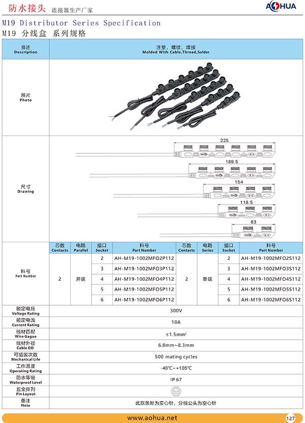 AHUA澳華公司專業(yè)生產(chǎn)LED防水插頭連接器、路燈模組分線盒、工控防水公母接頭、光伏航空插頭、新能源防水電源連接線、植物生長(zhǎng)燈連接線、畜牧養(yǎng)殖連接線、汽車線束。工廠自有模具制造、電線電纜押出、大型注塑、五金制造,雙生產(chǎn)基地,可來(lái)圖來(lái)樣個(gè)性化定制,國(guó)家高新技術(shù)規(guī)模企業(yè)!