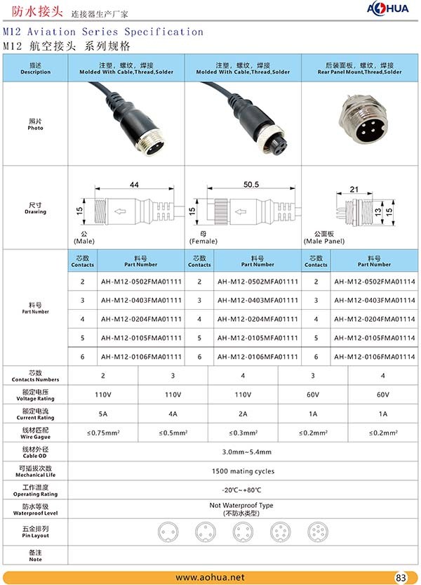 AHUA澳華航空接頭M12連接器農(nóng)業(yè)自動(dòng)化設(shè)備電氣電源插頭