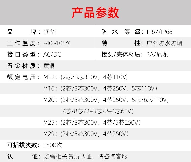 AHUA澳華公司專業(yè)生產(chǎn)LED防水插頭連接器、路燈模組分線盒、工控防水公母接頭、光伏航空插頭、新能源防水電源連接線、植物生長燈連接線、畜牧養(yǎng)殖連接線、汽車線束。工廠自有模具制造、電線電纜押出、大型注塑、五金制造,雙生產(chǎn)基地,可來圖來樣個性化定制,國家高新技術(shù)規(guī)模企業(yè)!