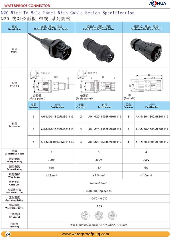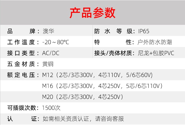 AHUA澳華公司專業(yè)生產(chǎn)LED防水插頭連接器、路燈模組分線盒、工控防水公母接頭、光伏航空插頭、新能源防水電源連接線、植物生長燈連接線、畜牧養(yǎng)殖連接線、汽車線束。工廠自有模具制造、電線電纜押出、大型注塑、五金制造,雙生產(chǎn)基地,可來圖來樣個性化定制,國家高新技術(shù)規(guī)模企業(yè)!