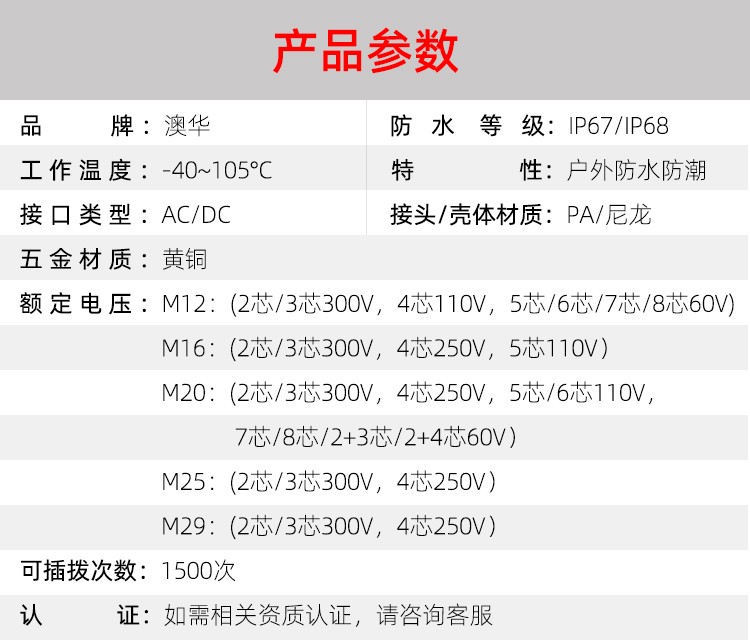 AHUA澳華公司專(zhuān)業(yè)生產(chǎn)LED防水插頭連接器、路燈模組分線(xiàn)盒、工控防水公母接頭、光伏航空插頭、新能源防水電源連接線(xiàn)、植物生長(zhǎng)燈連接線(xiàn)、畜牧養(yǎng)殖連接線(xiàn)、汽車(chē)線(xiàn)束。工廠(chǎng)自有模具制造、電線(xiàn)電纜押出、大型注塑、五金制造,雙生產(chǎn)基地,可來(lái)圖來(lái)樣個(gè)性化定制,國(guó)家高新技術(shù)規(guī)模企業(yè)!
